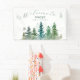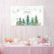 Cute rustic baby shower welcome party banner printed with a whimsical watercolor painting of an owl and a bunny in a forest. Perfect way to welcome guests to your baby's shower party located in a woodland area or other nature, countryside location.
