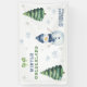 Anniversaire de enfant aquarelle. Aquarelle bonhomme de neige, flocons de neige, pins à feuillage persistant, arc vert.