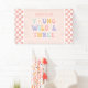 Young Wild and Three ! Retro checker imprimé avec la bannière fête d'anniversaire de la marguerite en rose.