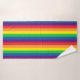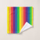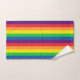 Une serviette de bain rayée, claire et simple, sertie dans un arc-en-ciel aux couleurs primaires rudimentaires et audacieuses.
