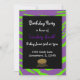 Un arrière - plan noir accentué par une bordure de rayures de tigre pourpre et vert. motif. Customisez avec toutes les informations de votre anniversaire selon vos besoins.