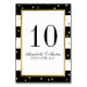 Cette élégante collection mariage moderne présente un arrière - plan rayé noir et blanc audacieux avec des points dorés le long de la frontière. Customisez la couleur de l'arrière - plan pour qu'elle corresponde à votre thème de mariage ou d'événement. Visitez notre collection de Mariages "Sparkling Stripes" pour voir tous les produits correspondants.Customisez chaque numéro dont vous aurez besoin pour votre événement.