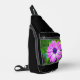 Ce sac de carrosserie noir par ailleurs présente une image brillante et joyeuse d'une fleur d'Osteopermum violet, une sorte de marguerite, avec un centre bleu. Entièrement revêtu, le sac mesure environ 13" x 9", est fait de peuplier polyester durable, et dispose de trois compartiments zippés pour stocker vos clés, portefeuille, téléphone, appareil photo, et bien plus encore. Il peut être porté comme un sac de carrosserie ou couché sur une épaule. N'hésitez pas à me contacter par Zazzle si vous avez des questions sur ce sac ou souhaitez aider à transférer cette conception à un autre article. Je suis heureux d'aider à m'assurer que le design s'adapte correctement.