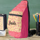 Créez un sac carrossable personnel de motifs posters de animaux pêche, rose et fuschia et votre nom customisé dans un script phont tendance.
