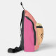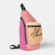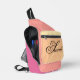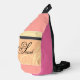 Créez un sac de carrosserie personnel de blocs de couleur pêche, rose et jaune et votre prénom customisé et votre dernière initiale dans un script.
