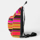 Lumineux et modernes, ce sac à élingue présente un mélange audacieux de rayures dorées, rouges et magenta, jumelé à des côtés marine élégants. Idéal pour les courses de tous les jours, les courses de gymnastique ou les aventures de voyage. se démarquent avec des couleurs fonctionnelles.