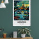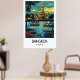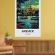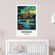 This Bangkok, Thailand travel poster highlights the dynamic character and cultural richness of one of Southeast Asia’s most vibrant cities. Inspired by classic travel poster design, the artwork reflects the balance of historic architecture, modern skyline, and energetic city life that defines Bangkok.