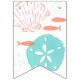 Un bunting d'anniversaire sur le thème de l'océan en orange vif et turquoise avec des accents de coquille aquarelle.