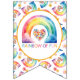 Donnez vie à la fête grâce à cette bannière colorée d'anniversaire avec un arc-en-ciel aquarelle, des coeurs fleuris et des lettres arc-en-ciel audacieuses. Les cravates motif pastel reproduisant magnifiquement avec la collection Rainbow of Fun, en font un cadre parfait pour les tables de desserts, les séances photo ou les entrées. Pré-enfilé et prêt à pendre, personnalisez et célébrez-vous !