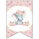 Bannière À Fanions Baby shower d'éléphant floral rose vif