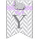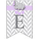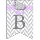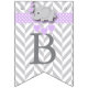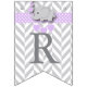 Bannière À Fanions Baby shower d'éléphant gris mauve et blanc
