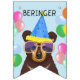 Bannière À Fanions Bear and Lion Cub Blue Pink Nom personnalisé