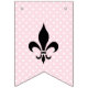 Oh la la ! Célébrez la future Mme avec cette guirlande de fête de mariage rose chic parisienne. Les fanions alternés présentent des rayures roses et blanches et des pois avec des accents élégants de fleur de lis et des lettres serif noires grasses pour un look ludique inspiré de la France. Une décoration élégante pour une fête de mariage ou un déjeuner de mariage sur le thème parisien.