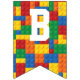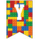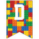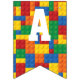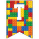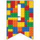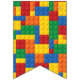 Bâtiment coloré bloc jouet joyeux bannière de bunting d'anniversaire. Une grande bannière de bunting pour la fête d'anniversaire d'un garçon où les blocs de construction de jouets de construction imbriqués sont le thème. Vous pouvez changer le message d'anniversaire heureux que vous voulez.