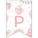Sweet “Cookies & Cocoa” birthday banner featuring soft pink cocoa art and pastel winter details. Perfect for decorating a cozy birthday celebration and creating a warm, charming party atmosphere. Editable and printable bunting style.