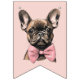 Dessin crayon couleur d'un taureau français brindle (noir et marron) portant un arc rose. Adorable !