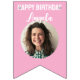 un bunting personnalisé de 40ème anniversaire pour elle en rose et blanc. Cette bannière de 40e anniversaire est la bannière parfaite pour sa fête de 40e anniversaire. vous pouvez customiser le nom, l'âge et la photo pour un bunting personnalisé.
