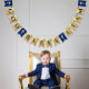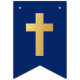 Une bannière de drapeaux en berceau or et bleu, adaptée aux baptêmes de garçons, premières communions ou confirmations religieuses.