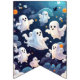 Éffrayant un mignon drapeau d'Halloween avec l'illustration d'un fantôme, citrouille orange, sorcière, chauve-souris, étoiles et nuages de ciel nocturne. Parfait pour Octobre Halloween fêtes anniversaires de enfants spécialement éffrayant un le premier anniversaire.