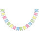 Couleurs inspirées de l'été de Cottage Blue, Happy Pink, Butter Yellow et Mint Green avec rayures et pois. Personnalisez cette bannière d'anniversaire amusante avec votre choix de texte et de nom.