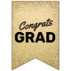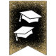 Élégante fête de remise des diplômes avec un thème noir et or, y compris la parties scintillant en faux or stylisée, les planches à mortier, les étoiles, les mots "grats grad" et l'année de classe.