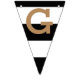 Une bannière rayée noire et or avec le mot "félicitations" qui peut être personnalisée avec votre formulation et vos couleurs.