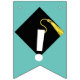 Fête de remise de diplômes unique décoration de drapeaux de bunting avec des félicitations avec casquette noir et or sur arrière - plan turquoise bleu pour la grade.