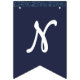 Parfaitement chic et preppy Congrats navy et blanc bunting avec faux parties scintillant marine détaillant le long du sommet des drapeaux