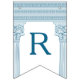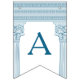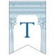 Drapeaux de décoration de fête à toga avec des piliers de temple minimalistes et un motif de méandre grec en bleu. Parfait pour vos mariages, fiançailles, fêtes de fin d'études, anniversaires de mariage, faire-part, enterrements de vie de jeune fille et fêtes d'anniversaire sur le thème de la Grèce antique ou de la Rome antique.