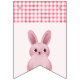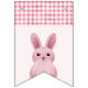Thème de lapin mignon pour l'anniversaire d'une fille avec un bébé lapin rose et un motif à carreaux.