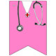 Décoration de célébration unique pour faculté de médecine ou guirlande pour fête de docteur avec des blouses d'hôpital roses, un stéthoscope et des rayures.