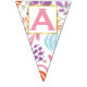 N'importe quelle couleur Personnalisée Random Pink and Purple and Orange Patten Baby Girl ou n'importe quel texte. Elégant pointes or sur rose avec lettres roses ou Changez pour dire ce que vous voulez! Faites de ceci votre texte ici Bannière de Bunting! N'importe qui le rend unique et vraiment le vôtre ! Parfait avec une touche d'or bordant les porte-lettres. Orange, vert et rose motifs floraux.