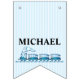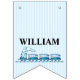 Votre garçon d'anniversaire est en train d'en écouter un ! Les drapeaux de bunting sur le thème du train bleu sont juste la chose pour augmenter le plaisir. Les drapeaux alternent des rayures blanches sur un arrière - plan bleu clair et des pois blancs sur un arrière - plan bleu foncé. Les drapeaux proclament que "Notre garçon d'anniversaire tourne un aujourd'hui1 !". Trois des drapeaux sont customisés pour inclure le premier, le milieu et les noms de famille du garçon d'anniversaire