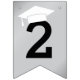La bannière de la fête de remise de diplômes élégante présente l'année de la classe supérieure, un casquette de grade, stripe, et détails du motif de point de polka. Couleurs gris argenté, noir et blanc. Customisez avec l'année.