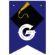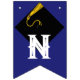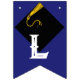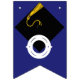 Graduation fête décoration de fête avec casquette de graduation classique noir et or sur un arrière - plan bleu.