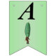 Cette bannière en forme de drapeau Happy Birthday est verte avec un gars drôle qui a un grand pickle vert pour une tête avec un regard surpris sur son visage et porte un costume marron. Customisez le Joyeux texte d'anniversaire et l'année d'anniversaire avec les modèles.