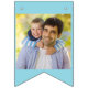 Bannière d'anniversaire joyeuse avec 8 de vos photos préférées, anniversaire heureux personnalisé à vous chanter et drapeaux customisés avec votre âge. Le design a une palette de couleurs audacieuses de bleu foncé, bleu turquoise, bleu d'oeuf de canard et blanc - que vous pouvez éditer dans l'outil de design si vous le souhaitez,