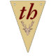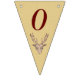 Cette bannière en forme de drapeau, Happy Birthday, est d'une couleur bronzée claire avec des lettres rouges profondes et une tête de cerf brun surligné rouge avec de grands bois sur chaque drapeau. Customisez l'année d'anniversaire avec les modèles.