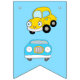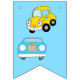 Porte-bretelles orange et bleu, cravates arc, camions et voitures bannière d'anniversaire de petit garçon.