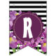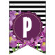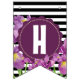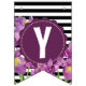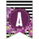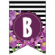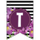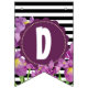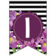 Bannière À Fanions Joyeux anniversaire violet Iris noir blanc rayures