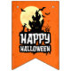 Happy Halloween design de texte illustration avec maison hantée, cimetière et chauves-souris décoration à pleine lune sur grunge orange arrière - plan