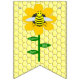 Ce magnifique bunting présente une image graphique d'un joli bourdon jaune avec des rayures noires, des yeux, des antennes et des jambes. Il possède de jolies ailes bleues et blanches. L'abeille est assise au milieu d'un tournesol jaune doré. La fleur a une tige verte et trois feuilles. Le message "happy bee day" (Jour heureux des abeilles) apparaît sur les trois feuilles. L'arrière - plan est composé d'un motif jaune peigne.
