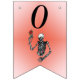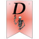 Cette bannière en forme de drapeau, Happy Birthday, est rouge au centre et s'estompe en rose avec un squelette tenant une seule rose rouge sur une tige au-dessus de sa tête. Customisez le Joyeux texte d'anniversaire et l'année d'anniversaire avec les modèles.