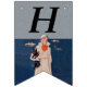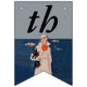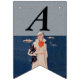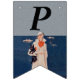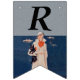 Cette bannière en forme de drapeau a une dame en costume blanc debout près de l'océan avec des bateaux dans l'arrière - plan tenant un chien de Terrier écossais noir. Customisez le texte du Joyeux 40ème anniversaire avec les modèles.