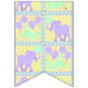 Ajoutez quelque chose de mignon à votre décor de baby shower neutre de genre avec cet adorable éléphant violet lilas C'EST UN BÉBÉ bannière de drapeaux de bunting avec un thème animal de cirque. Chaque drapeau de brassage a une empreinte d'allover avec un éléphant violet équilibrant une boule verte menthe et un joint vert menthe avec une boule violette légère et de petits ballons lilas. Les drapeaux du centre de cette bannière de drapeaux de baby shower incorporent des cercles blancs et des lettres violettes profondes qui épellent IT'S A BABY. Facile à customiser, les quatre dernières lettres peuvent être customisées afin que votre bannière de baby shower violet, blanc, vert et jaune lise IT'S A GIRL ou IT'S A BOY! comme vous le souhaitez.