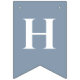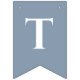 Une simple bannière à fanions pour un mariage bleu poussiéreux, avec les mots "M. & Mme" et le nom de famille du nouveau couple et 3 cœurs, tous en majuscules blanches sur fond bleu poussiéreux, sauf les cœurs, qui sont bleu poussiéreux sur fond blanc.