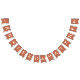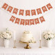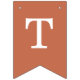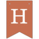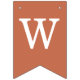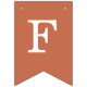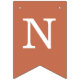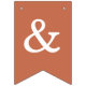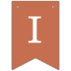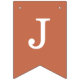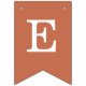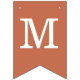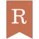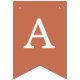 Une simple bannière de drapeaux pour un mariage en terre cuite, avec les noms des mariés, avec des majuscules blanches sur fond brun terre cuite.