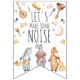Joli Bunting Anniversaire de enfant avec le texte "Let's Make some Noise", trois aquarelles chantant et dansant des animaux africains (zèbre, hippo et girafe), des instruments de musique et des notes musicales. Décor de fête assorti disponible.