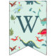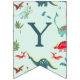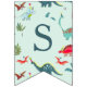 Les enfants adoreront ce motif de dinosaure bleu sur leurs fanions de décoration pour une baby shower avec sur chaque drapeau une lettre qui forme BABY SHOWER. Œuvre originale de Caroline Bonne Müller