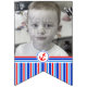 Thème nautique rouge et bleu Joyeux 5 anniversaire de fêtes de bunting. Personnalisez avec l'année d'anniversaire de votre enfant et deux de vos photos préférées du garçon d'anniversaire. Lit actuellement Joyeux 5e anniversaire. Correspond à d'autres éléments de la collection Nautical. Dispose d'une bande marine rouge et bleue avec un design d'ancrage. Art et design par Sarah Trett. www.sarahtrett.com pour www.mylittleeden.com